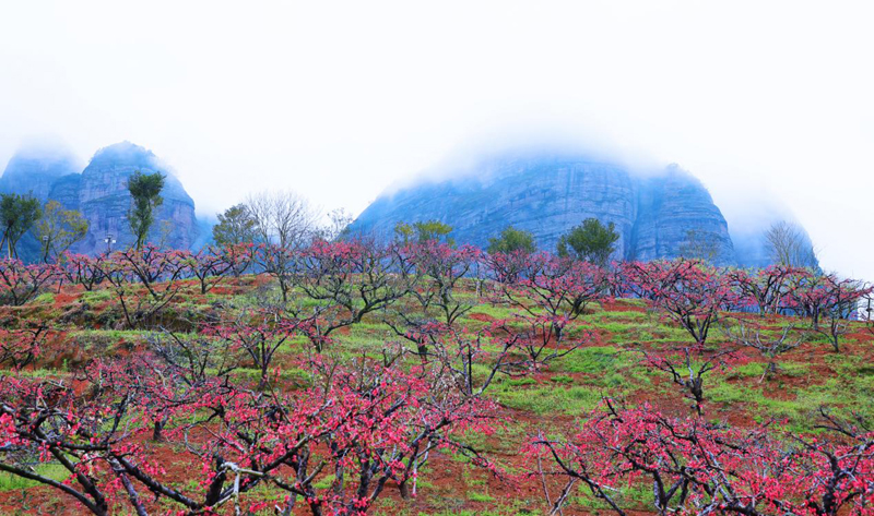 十里桃川 武当山下遍布千亩桃园,二、三月春暖花开时桃花竞相绽放,形成一片花海,构成了一幅十里桃川的山水壮美画卷。