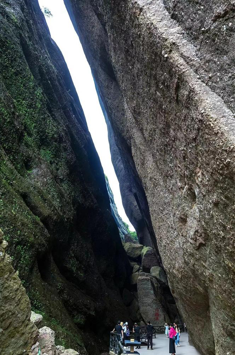 一线天 位于武当峰与将军峰之间,是一条仅由一人通过的狭窄通道,是武当山最为陡峭的地方,站在谷底仰头望去,天空犹如一条细线一般,让人为大自然的鬼斧神工惊叹。