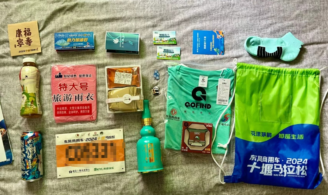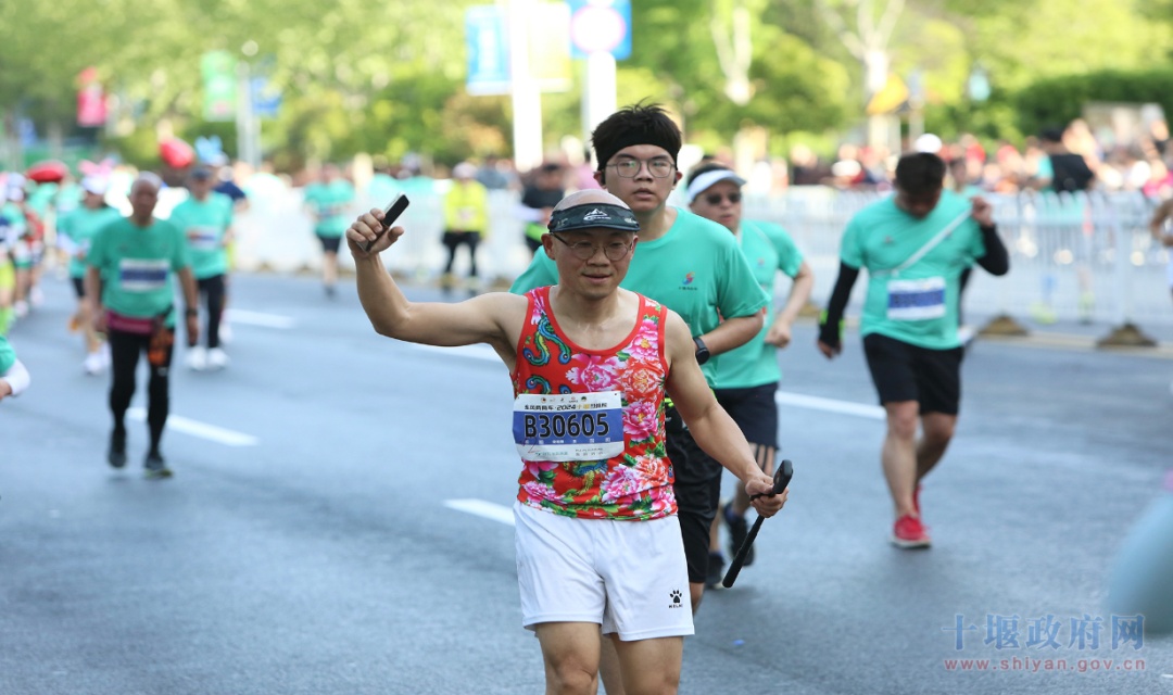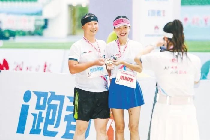 郧西天河爱情马拉松选手展示完赛奖牌。刘成臣 摄