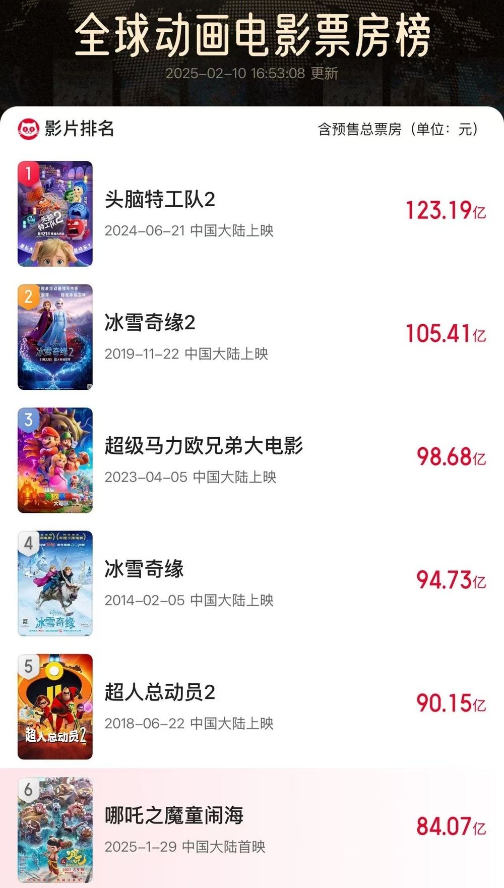 电影《哪吒之魔童闹海》观影人次(含预售)