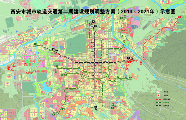 西安市城市轨道交通第二期建设规划调整方案(2013~2021)示意图 图片来自网络