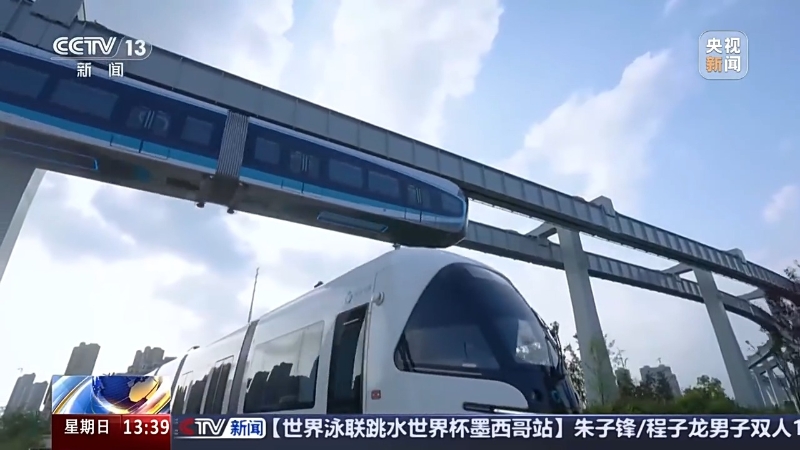 看过花、跨过海,到湖北武汉去看一看,我国首条悬挂式空中轨道列车,在生机盎然的春天里,有着怎样的独特风景?