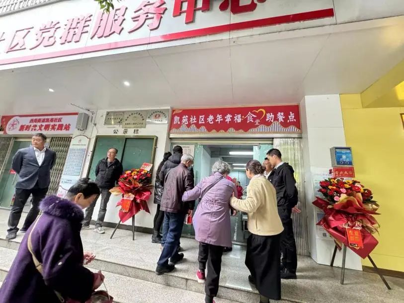 为切实解决辖区老年人“吃饭难”问题,确保居家老年人吃得营养、吃得放心、吃得满意,弘扬敬老孝老的中华民族传统美德,让辖区老年人吃到可口的饭菜,“食”有所依,在家门口就能享受到幸福“食”光。11月30日上午,昆明市西山区西苑街道凯苑社区老年幸福食堂助餐点正式启动。西山区民政局分管领导、西苑街道党工委、办事处主要领导及分管领导、凯苑社区党委主要领导以及城建物业分管领导出席揭牌启动仪式。