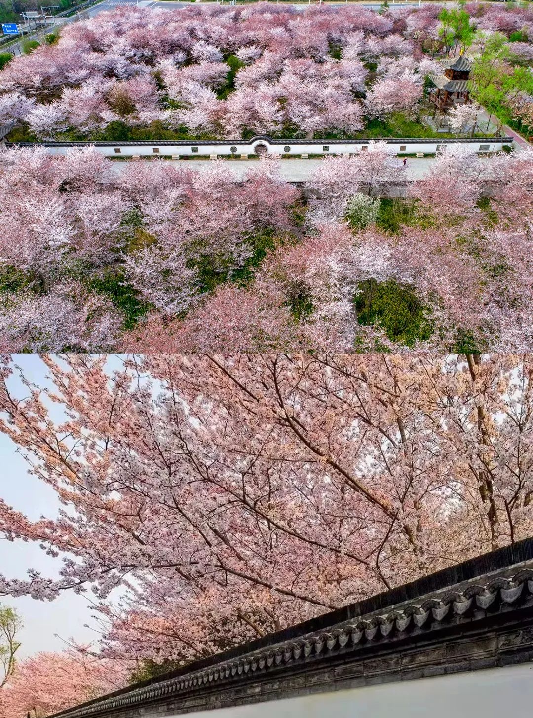 唐韵樱花园里,千株樱花如云似雪,随风轻舞,仿佛穿越盛唐的诗意画卷。