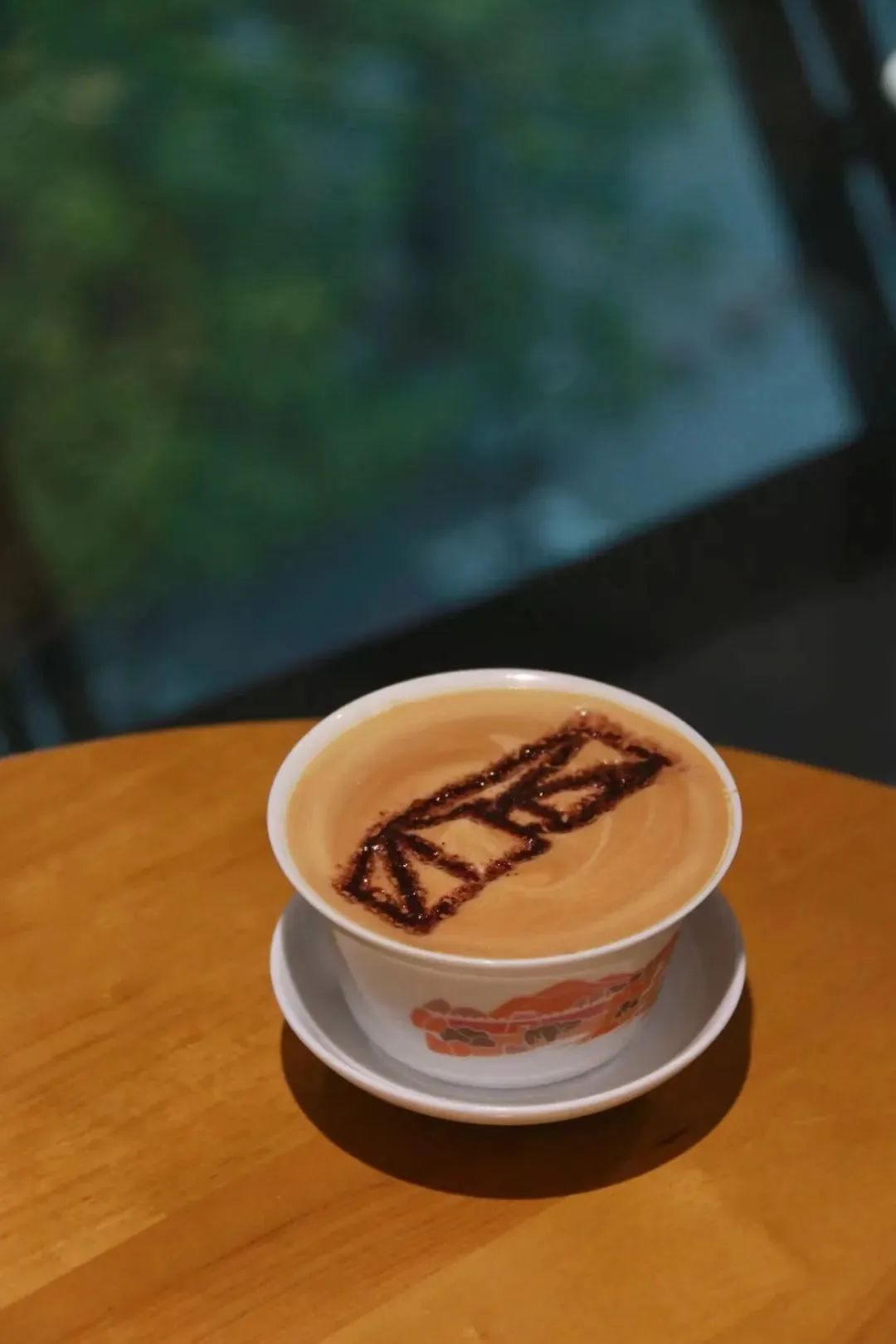拉花则完美复刻镇馆之宝石犀、博物馆本馆logo