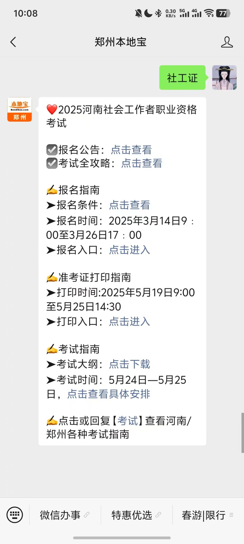 温馨提示:微信搜索公众号【郑州本地宝】,关注后回复【社工证】,可获2025河南社会工作者资格考试指南,包括报名指南、准考证打印指南、成绩查询指南等(持续更新)