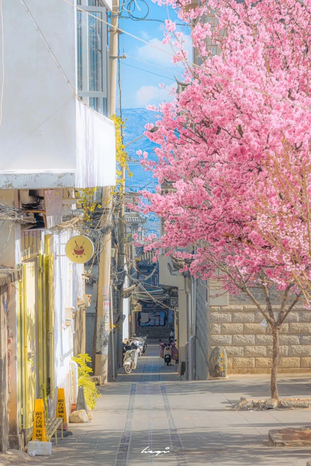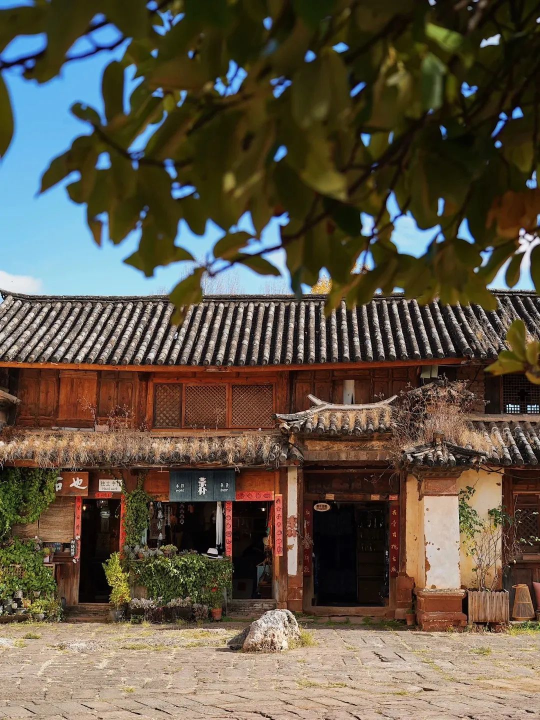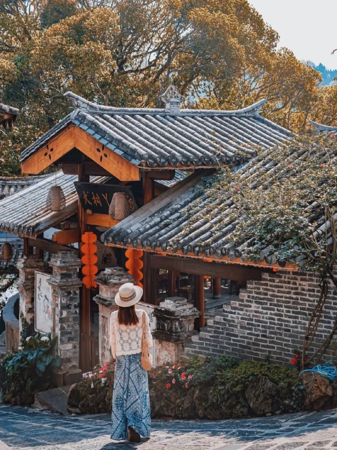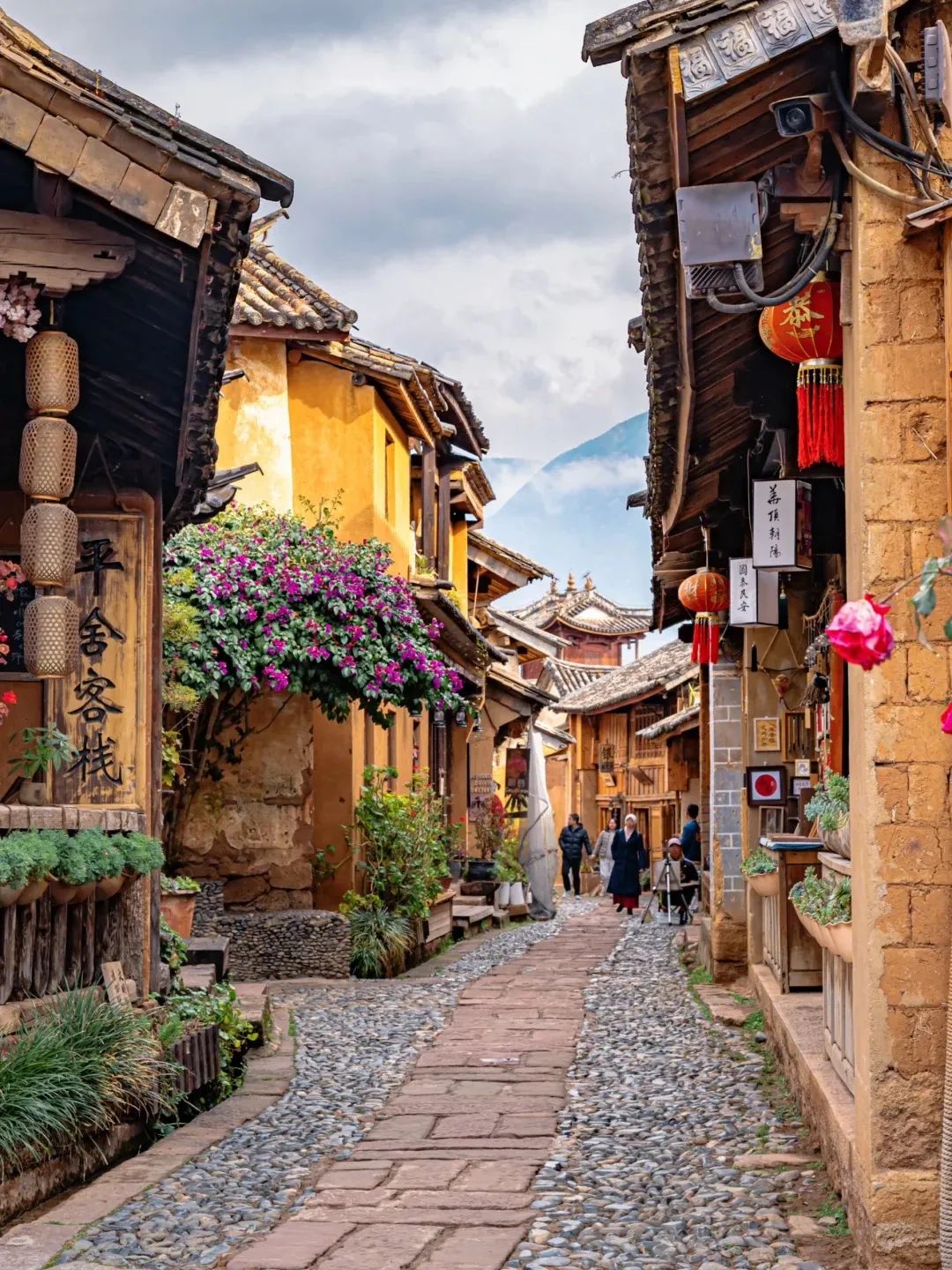 还有云南的古镇啊,二月就已经鲜花缀满了枝头、屋檐下。