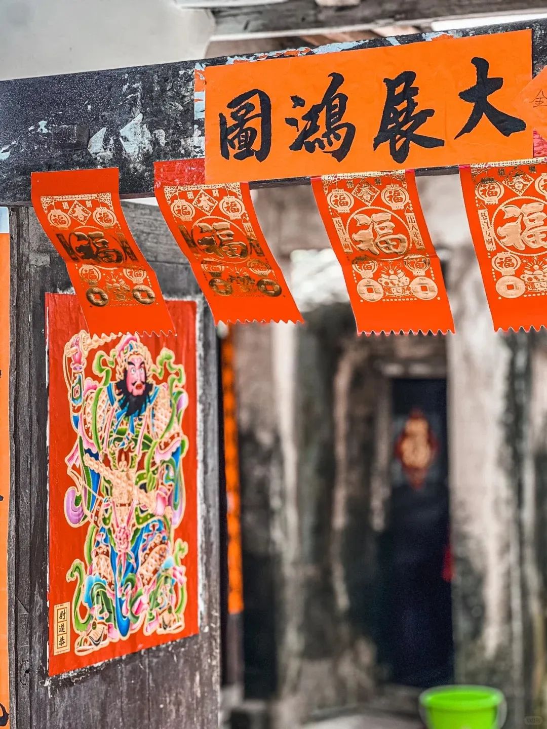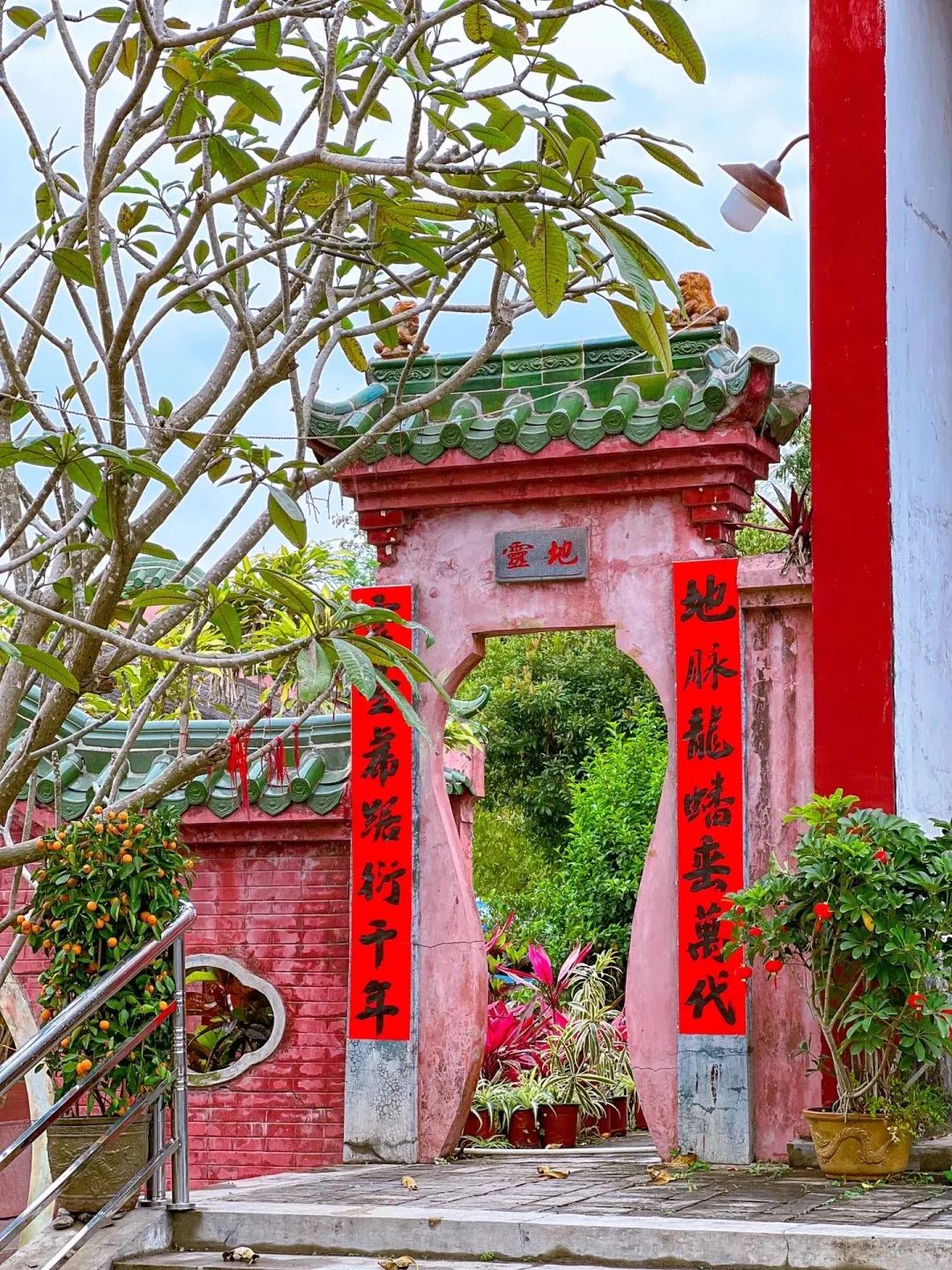 门上火红的对联,门前翠绿的植被,还要晾晒的椰子壳,就跟走进了熟悉的人的家里,全都是生活气息。