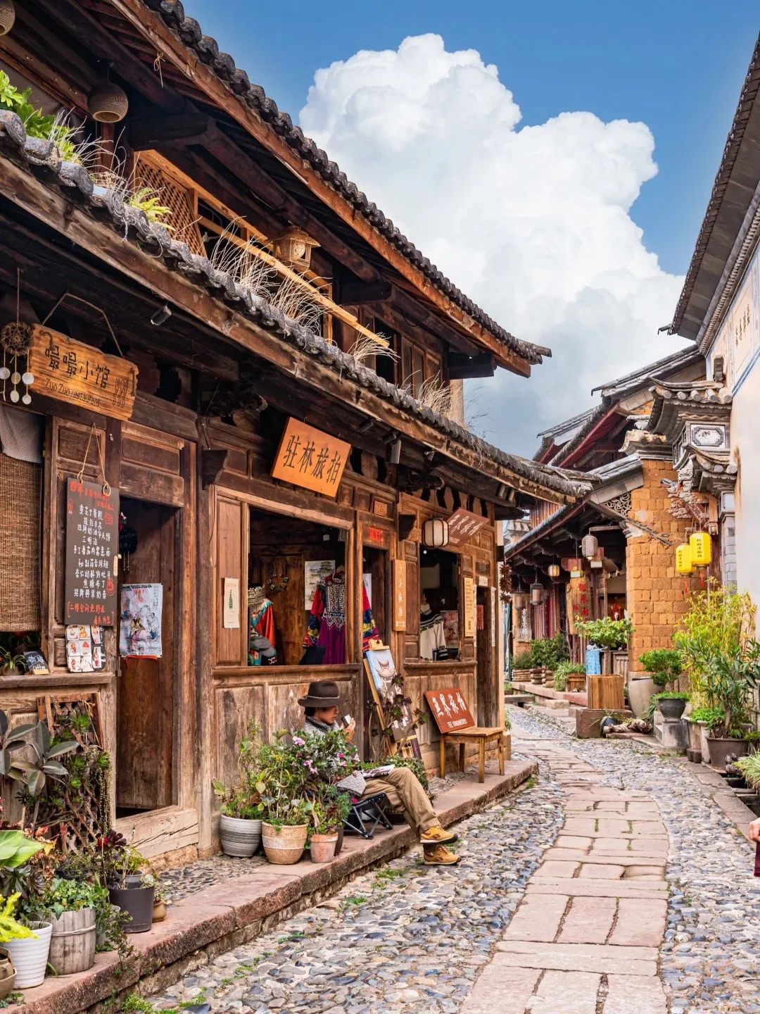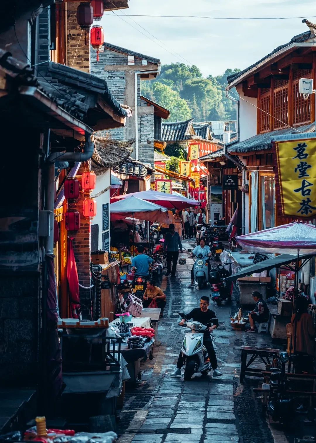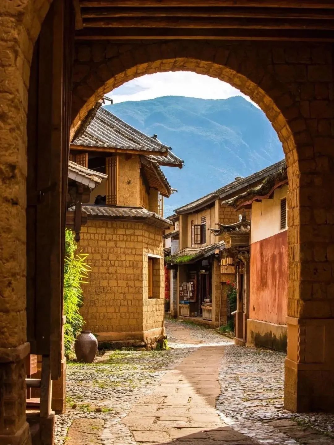 春夏的古镇,温暖又静谧,踏着火山石板路,走到另一头的民居和集市。