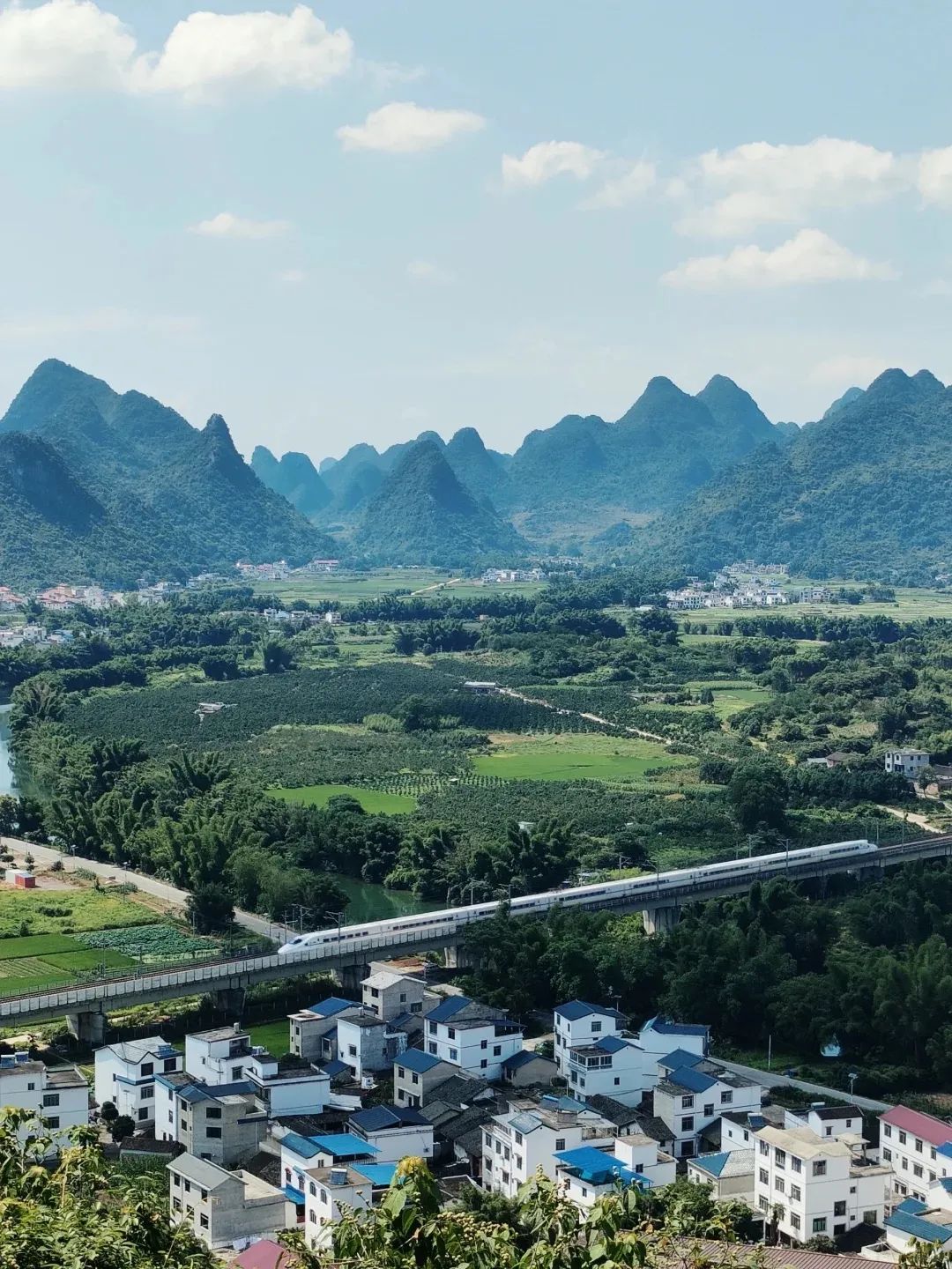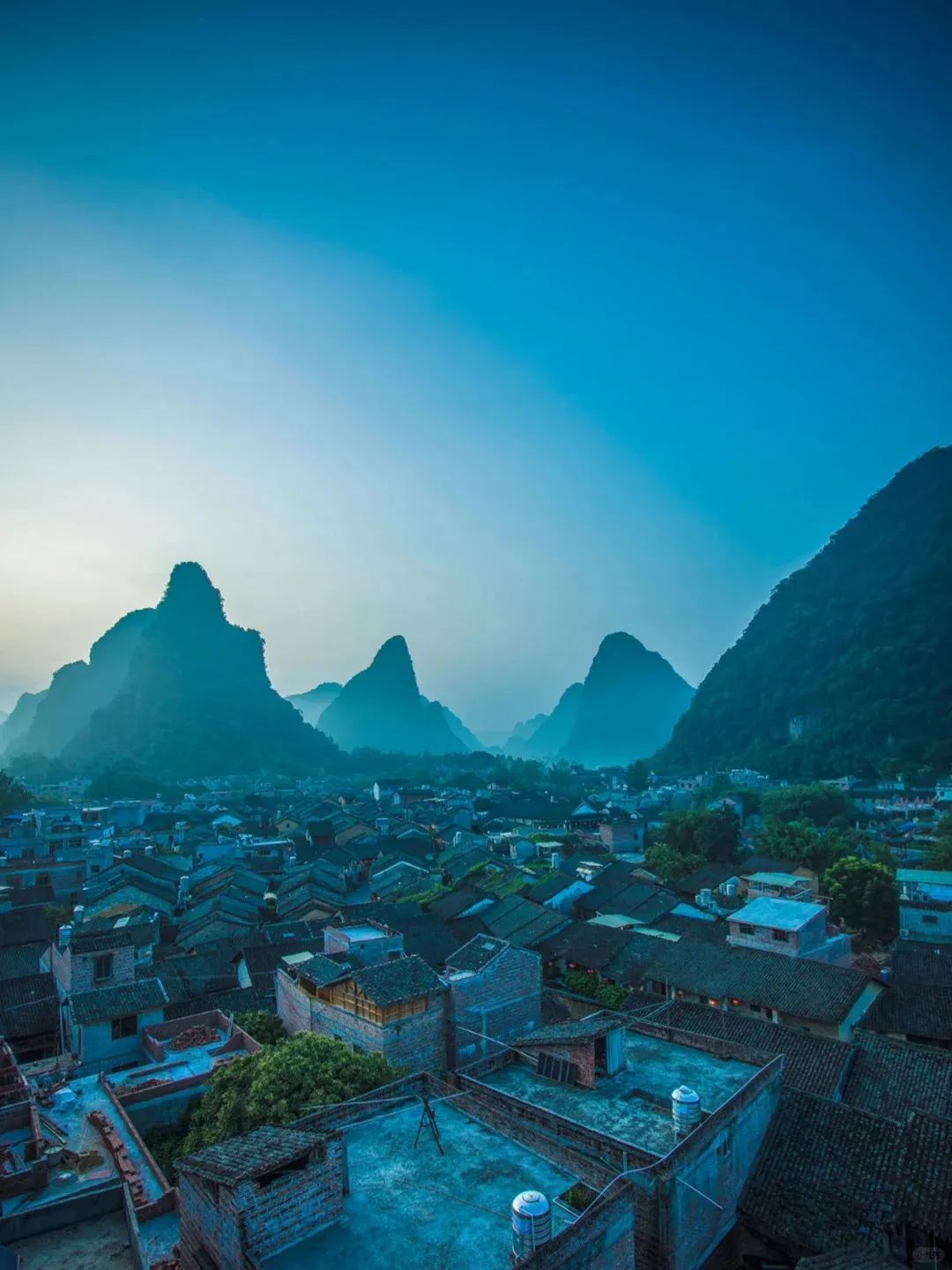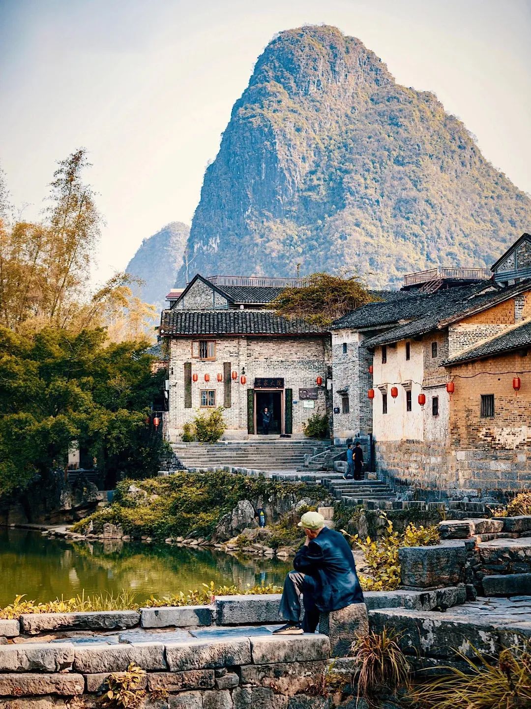 这里是岭南风格的屋顶,一座座喀斯特地貌的锥形山峰包住了这个镇,也包住了时间的流逝。