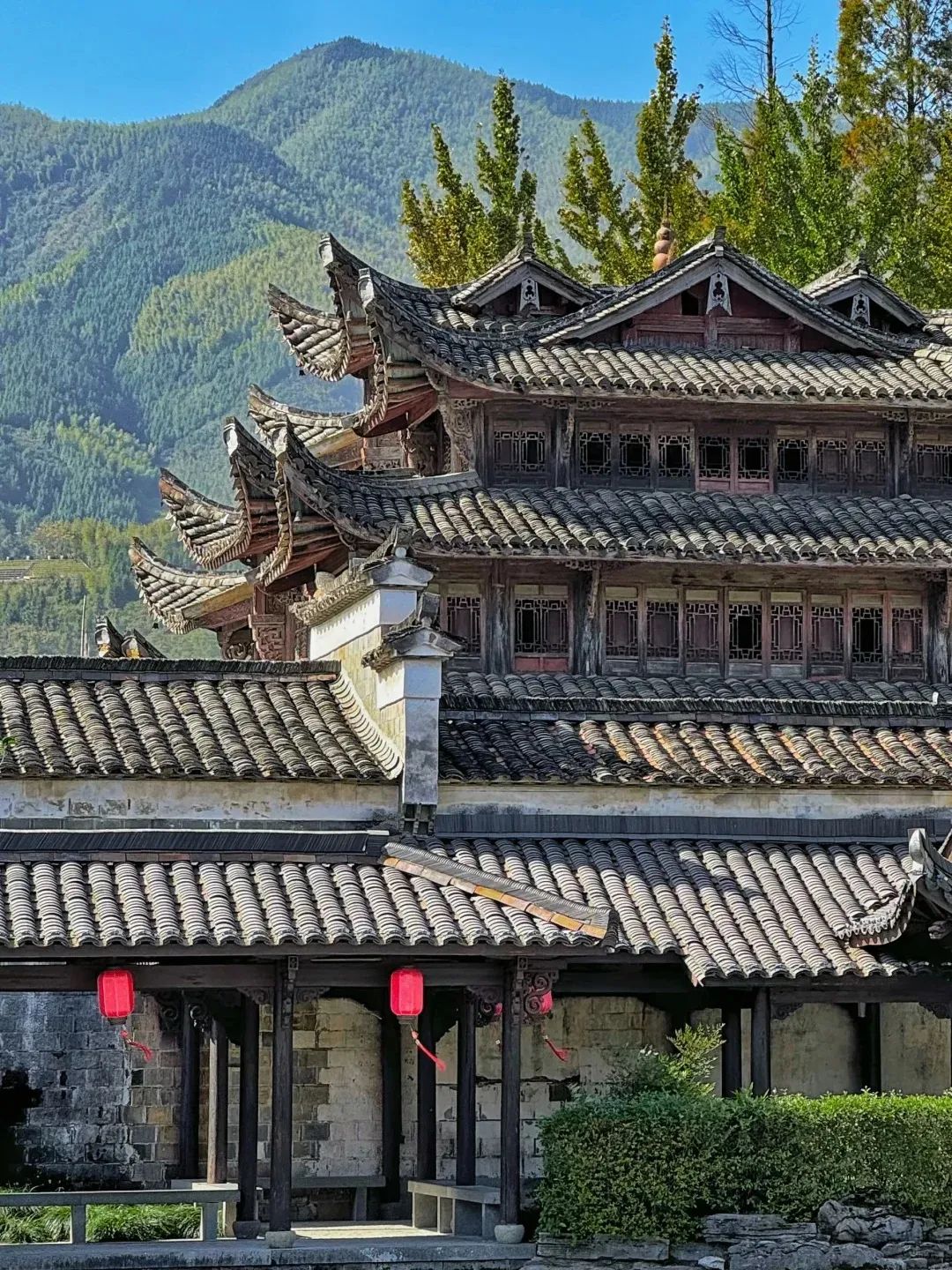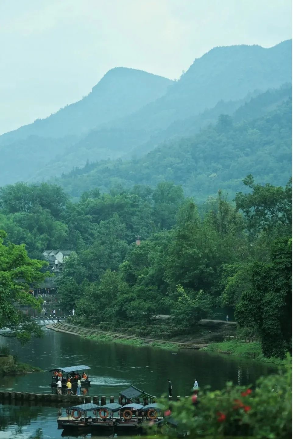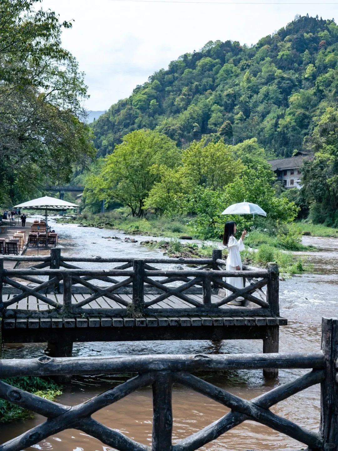 与青山绿水融为一体,仿佛闯入一副岁月静好的山水墨画般。