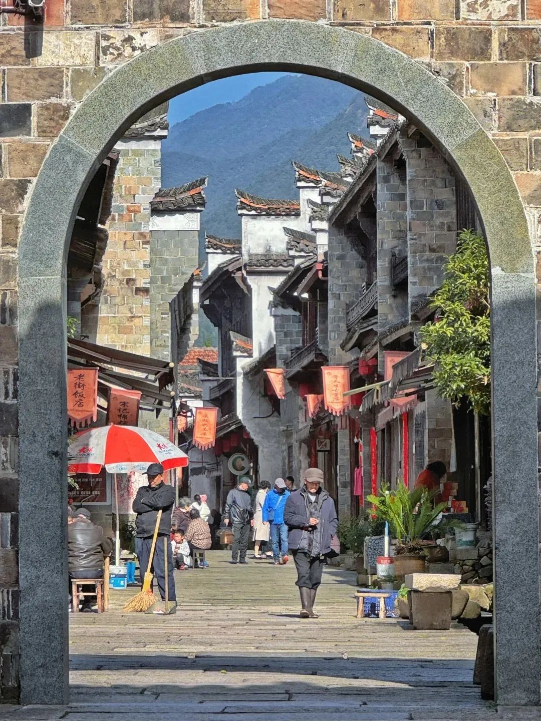 你可以去走走光亮的青石板路,去看看斑驳的明清古屋,去偶遇村人溪边浣洗,挑担而归……