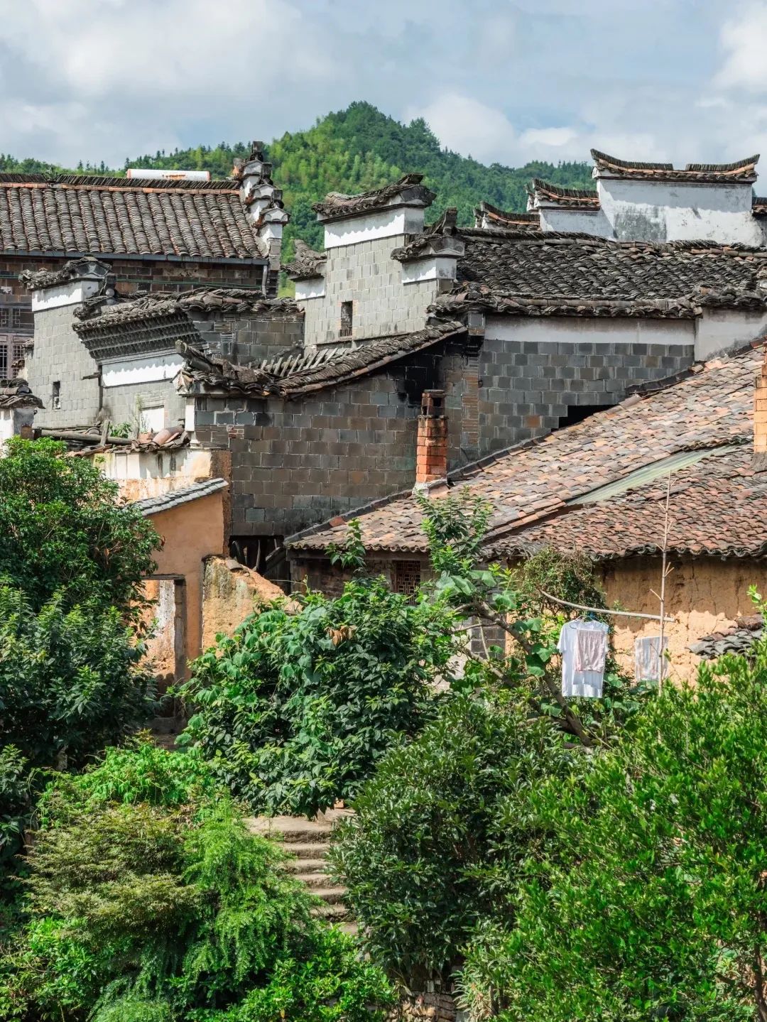 徽式的马头墙、闽式风格的土墙门落、江浙流派的屋脊里厅……三省建筑风格交织在一起,房廊相接。