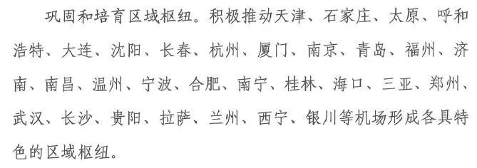 三大世界级机场群,分别呼应京津冀、长、珠三角三大城市群;29个区域枢纽,则包含了青岛、南京、武汉、长沙、杭州等地的机场,完整名单如下图: