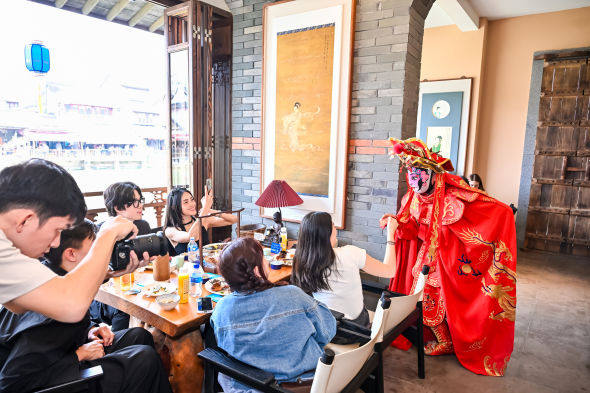 3月26日,这些海内外博主来到青浦朱家角古镇,在课植园里观赏实景昆曲《牡丹亭》,在漕港河上坐摇橹船、观看船拳、赏古建筑,在江南第一茶楼里品香茗、听评弹,领略川剧变脸、青浦稻草编结制作技艺等精彩非遗活动,沉浸式感受江南古镇的独特韵味。