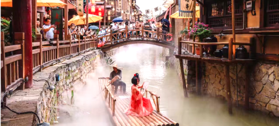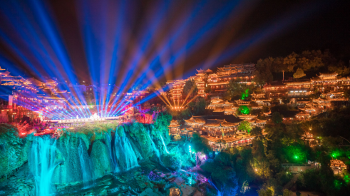 沉浸影戏:1平方公里实景舞台360°行进式互动演艺,融合武术、舞蹈、戏剧、跑酷、光影特效,九大场景同步上演。