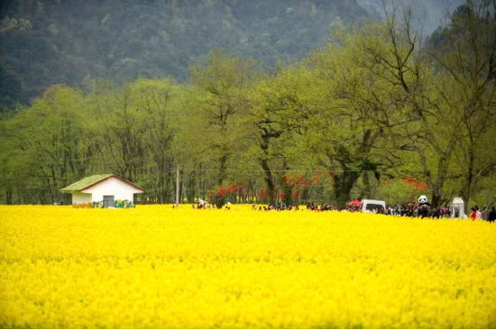 红土坪·栗子坪油菜花:神仙居山脚下,奇山秀水间,油菜花香飘万里,蜂飞蝶舞,流金溢彩的油菜花把仙居装扮成金黄的世界。古朴的吊脚楼与淙淙的小溪流水、大片的野生柳林相映成趣。春风里,花浪摇曳着曼妙的舞姿,细说春天的无限美好。这里不仅山水秀丽、人勤物美,而且有着浓厚的土家文化、淳朴的民俗村情,是一个土家文化悠久、物产丰富的传统村落。