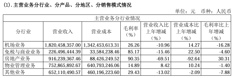 但是界面新闻也注意到,机场主业毛利率远低于房地产板块。过去的2024年,海南机场的机场管理业务毛利率为26.26%,而房地产业务毛利率高达90.35%,相比2023年还上涨30.31%。随着“去地产化”战略推进、房地产营收占比压缩,势必使得海南机场业绩承压。