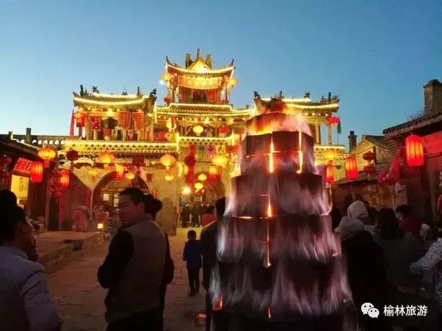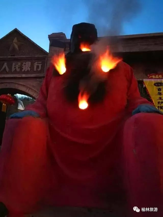 每逢陕北榆林过大年活动,高家堡小镇便又红火起来。古朴的小镇被装扮一新,红彤彤的灯笼照耀了街道,全城各式各样的花灯五彩缤纷,美不胜收!最令人瞩目的是,沿街站立的火判官,烈焰熊熊、甚为壮观。