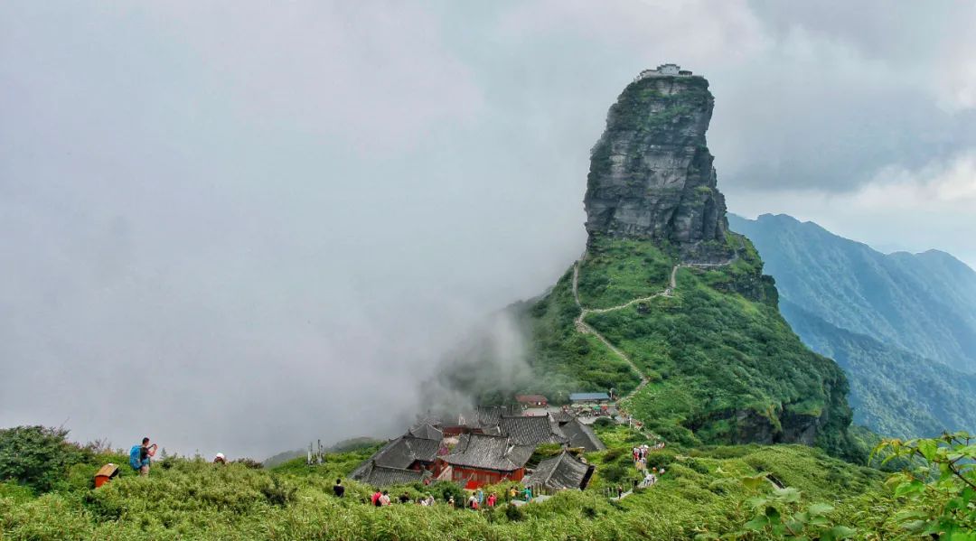梵净山:在与湘、渝、鄂三省、市交界的黔东北边陲,有一座充满神秘色彩而又雄奇伟岸的山峰,叫梵净山,是我国第 53 处世界自然遗产。身为“十大避暑名山”之一的梵净山,夏无酷暑、冬无严寒。