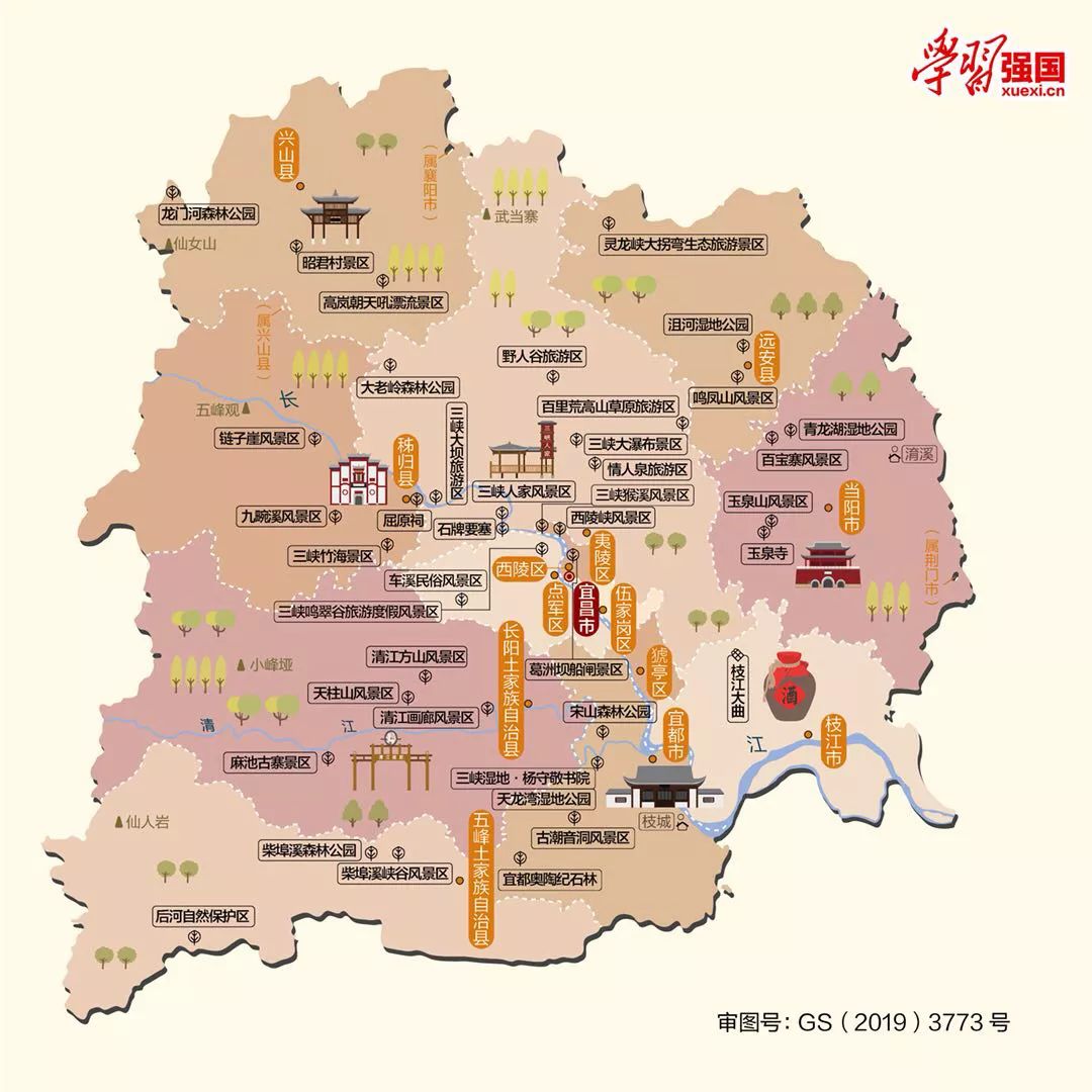 宜昌,古称“夷陵”,因“水至此而夷、山至此而陵”得名,素有“三峡门户”“川鄂咽喉”之称。宜昌历史悠久,巴楚文化源远流长,是爱国诗人屈原和民族友好使者王昭君的故里。