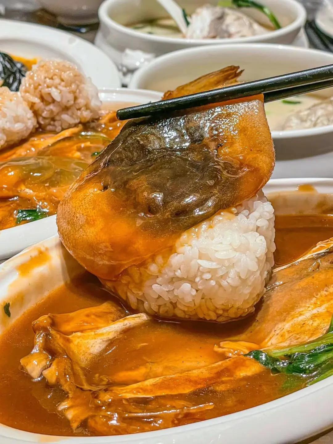 弹滑的胶质感,每一口都很惊艳。配上米饭汤汁浓郁,每一粒米都吸饱了汤汁的鲜美,简直美味。