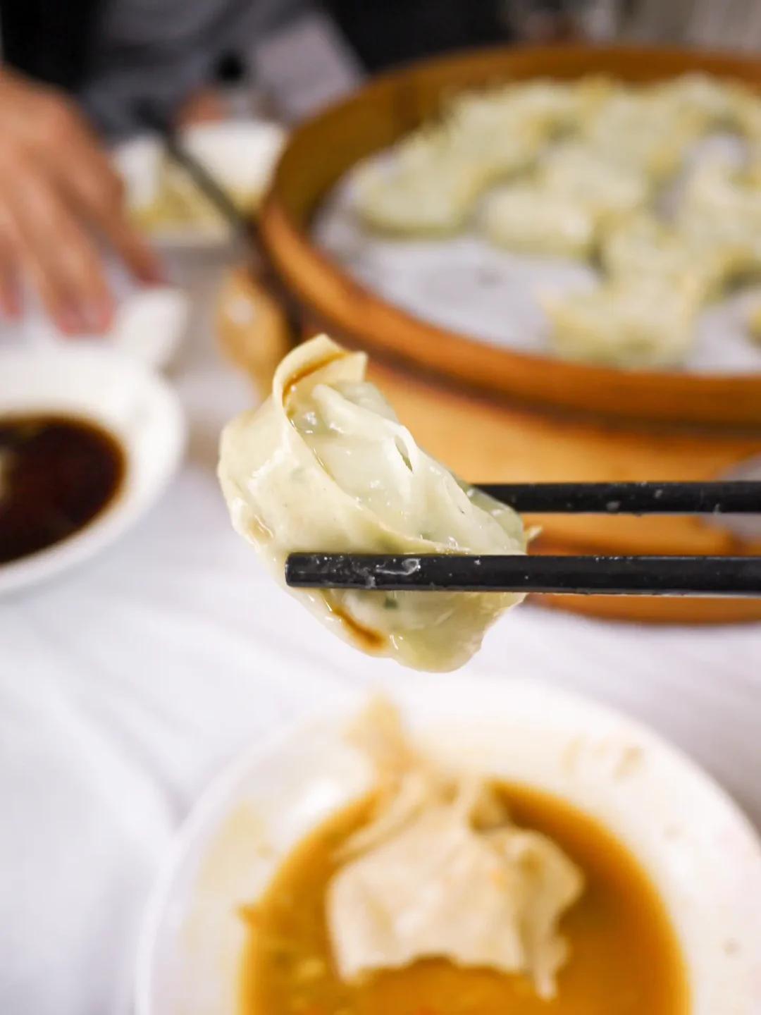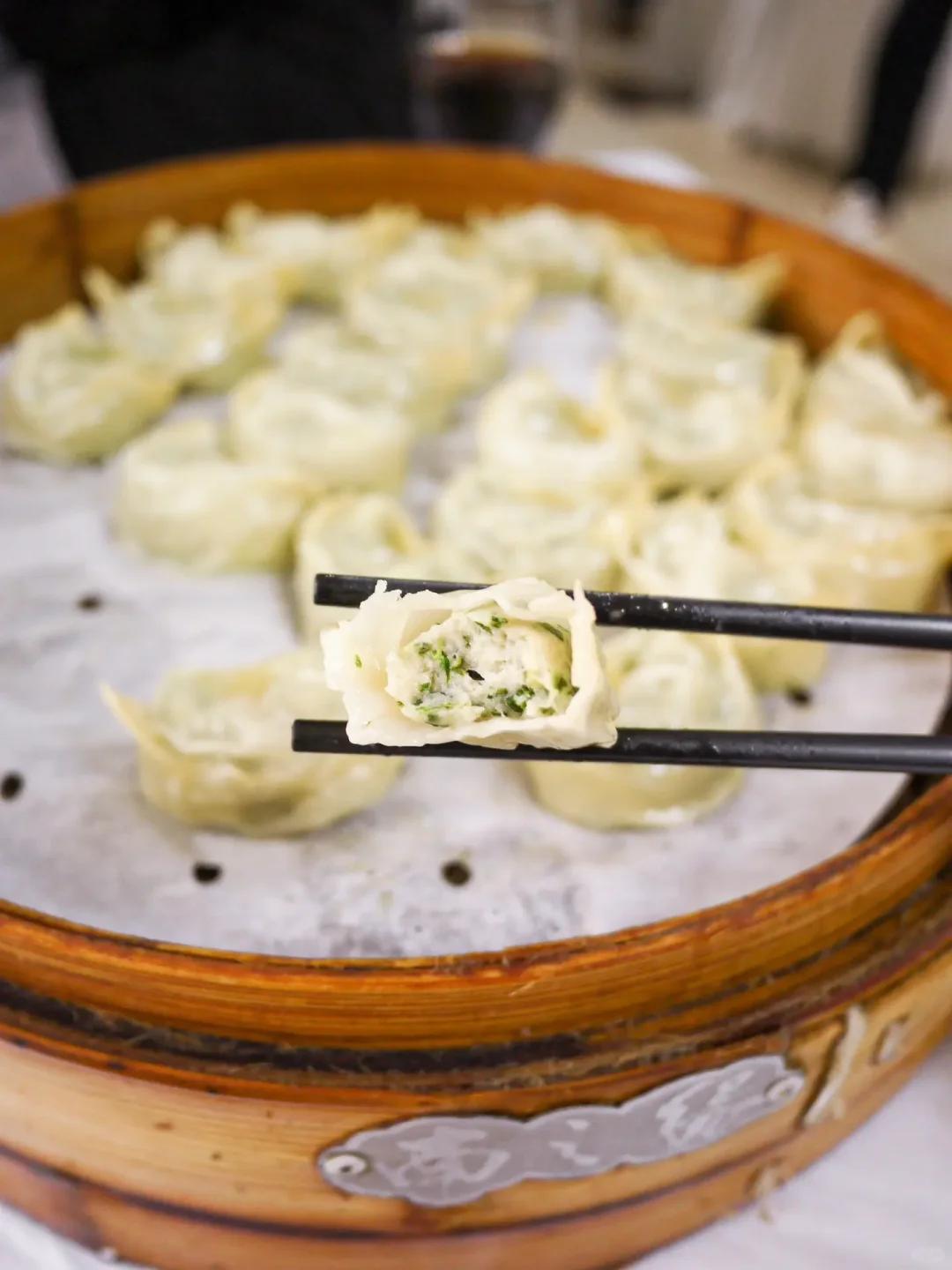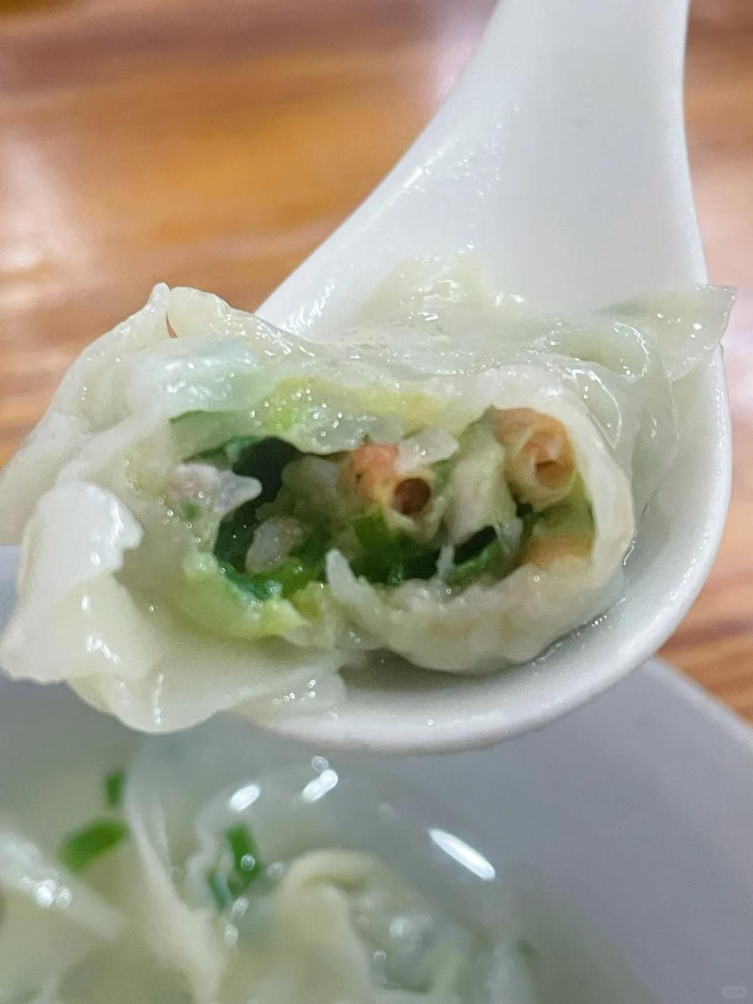 咬下去的第一口,馄饨皮的爽滑与韧性在舌尖交织,鲜美的刀鱼肉馅在口腔中散开,十分的鲜甜。