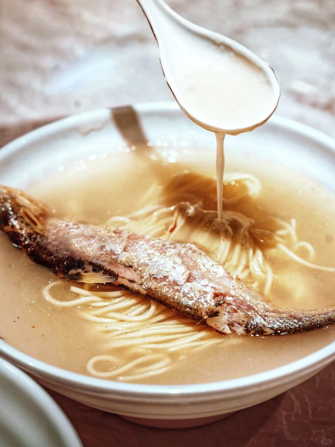 还有刀鱼面,加入猪骨和鸡汤煮出精华高汤。吸溜一口,仿佛置身于靖江的江边,感受着那微风拂面和江水的气息。