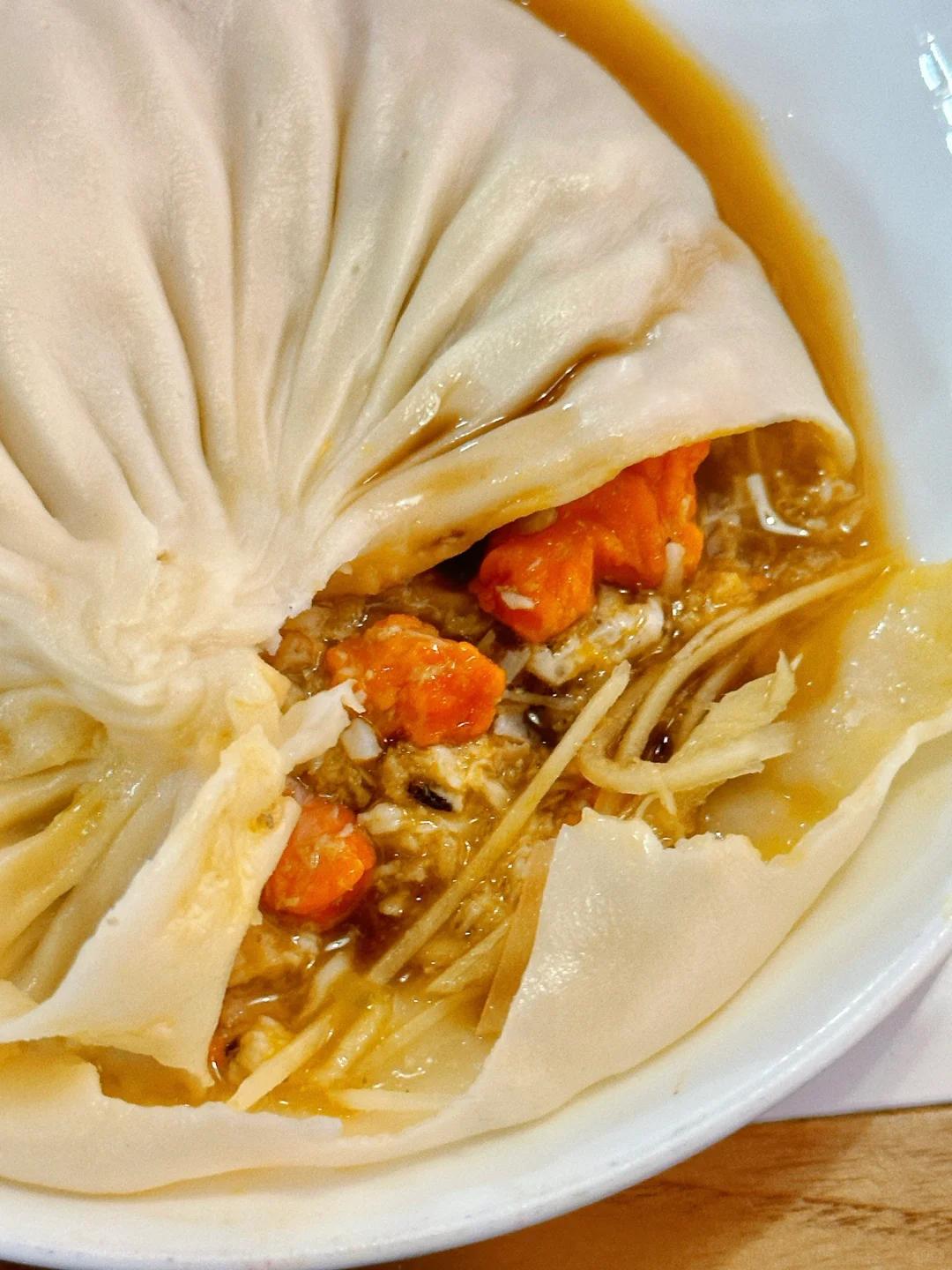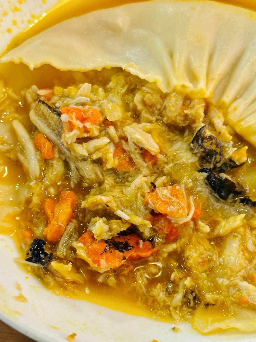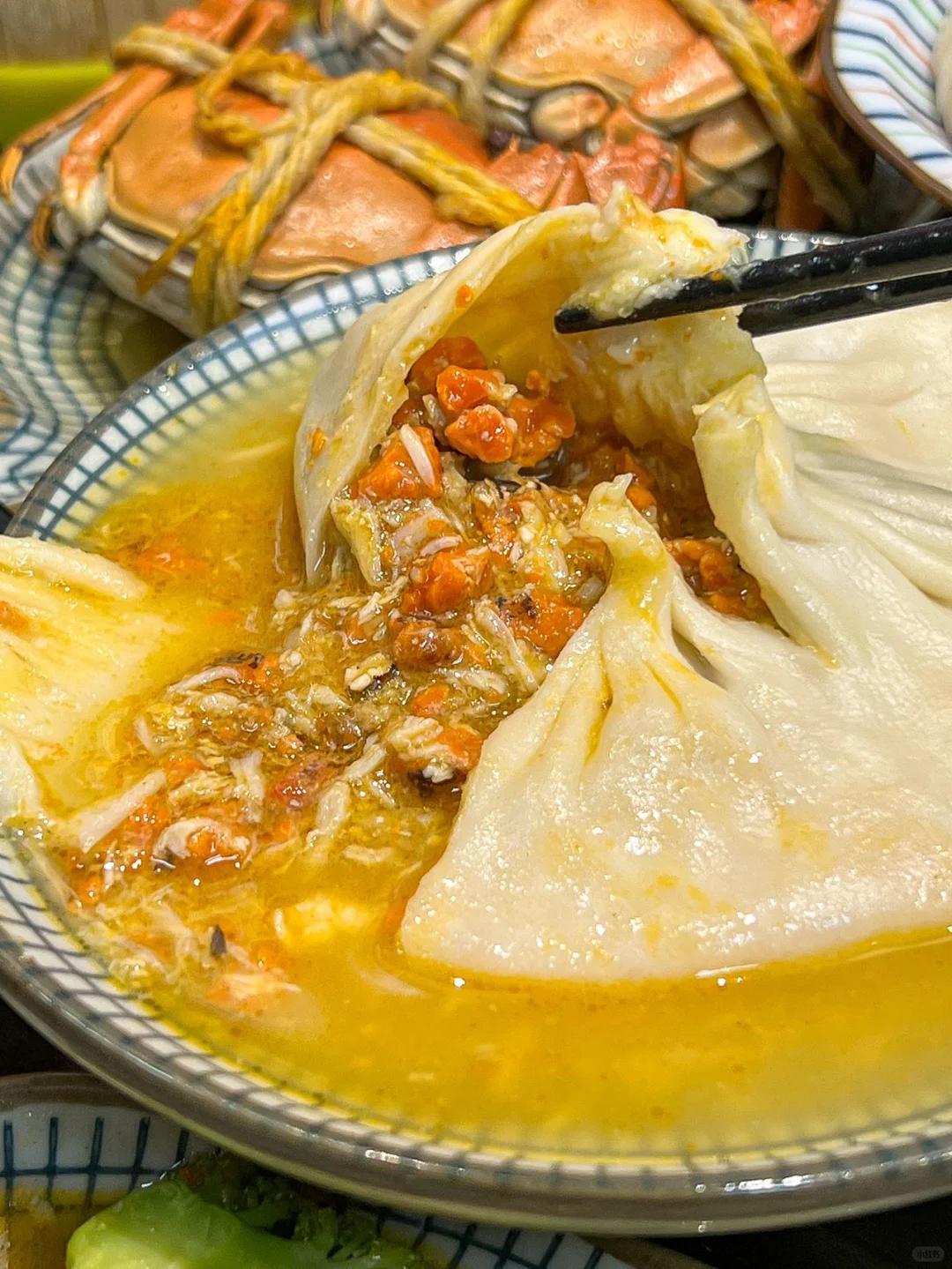 每口都能吃到超多黄澄澄的蟹黄和白花花的蟹肉,蟹的鲜香瞬间充满口腔,一口鲜到“打头”,过瘾死了。