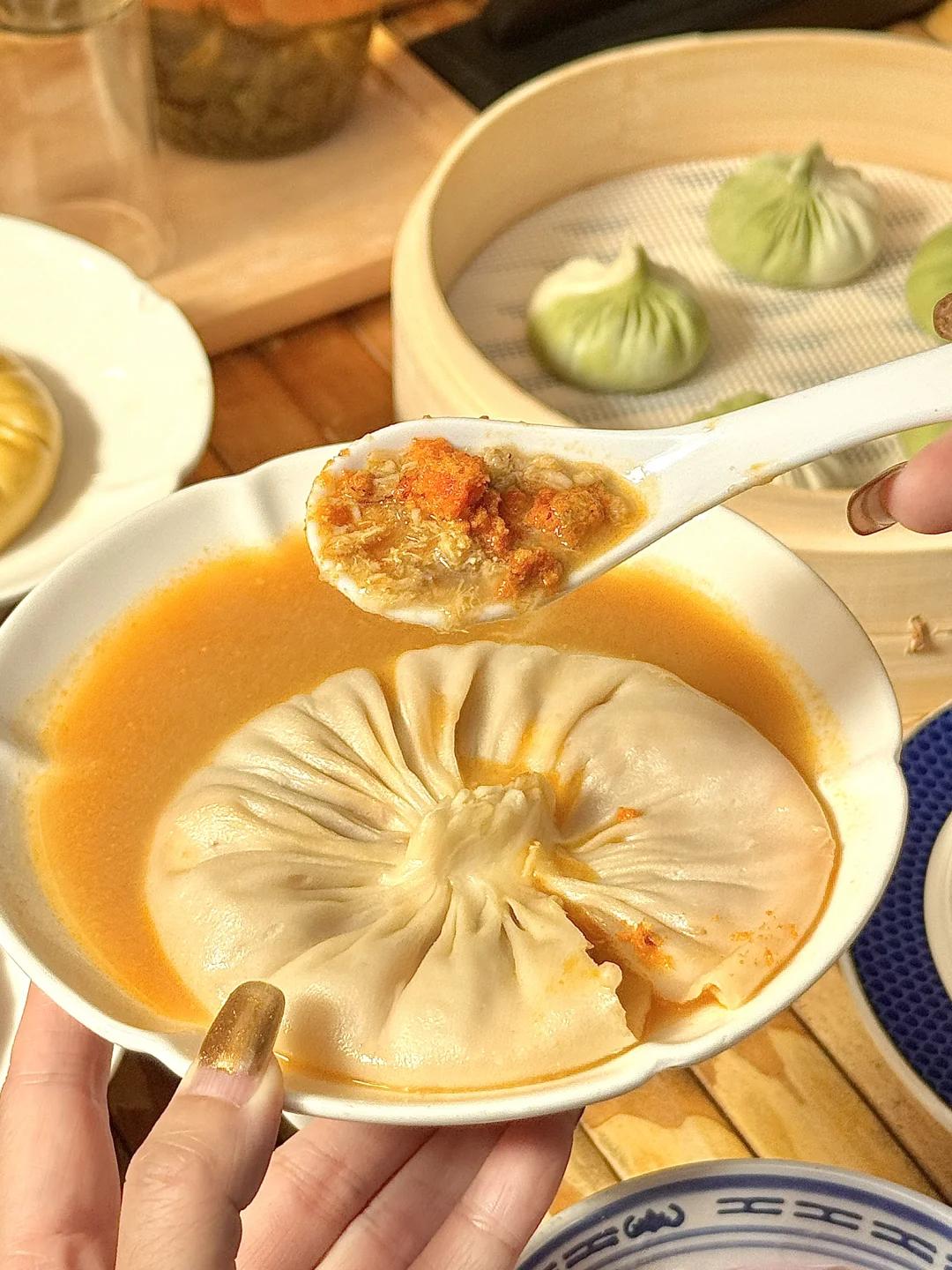 吃汤包的时候,还喜欢用姜醋(也称蟹醋)搭配。蟹醋倒进汤包里面,去腥又去寒,而且还能解腻。