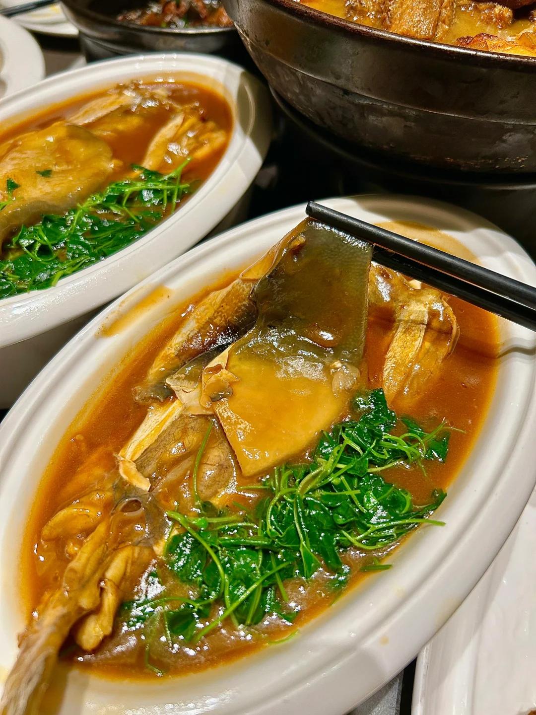 本地人口中宴请地儿,菜品特色卖相好,环境高大上,不过人均200。除了红烧河豚,还有油煎蟹黄汤包、烤羊、菊花豆腐小野菜都很好吃。