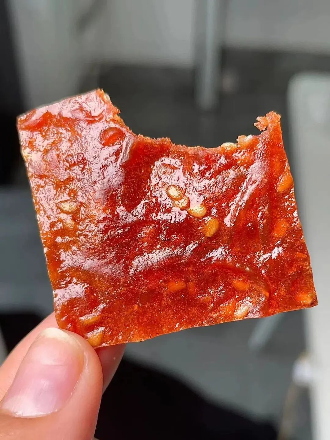 瞧妹尝到正宗靖江肉脯后,立刻对超市里买的硬邦邦版本的肉脯心生嫌隙。