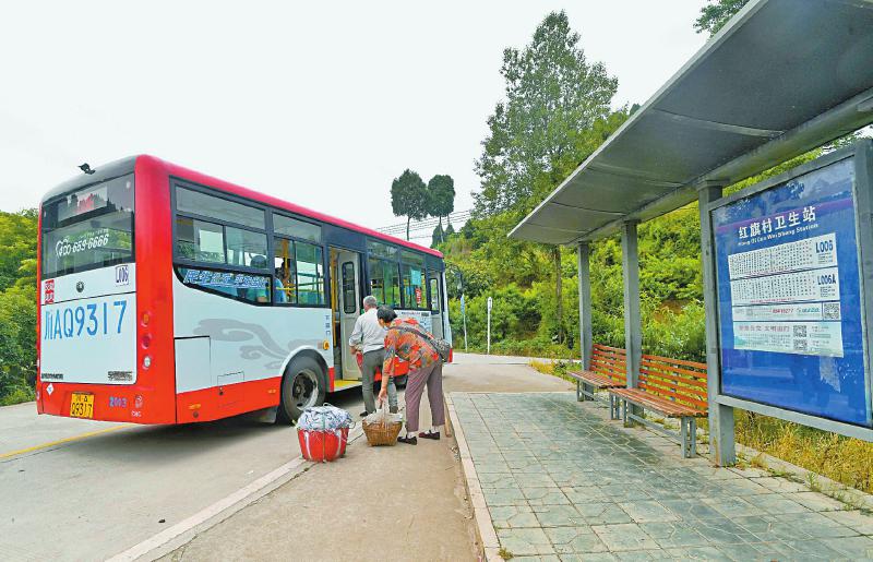 每天往返红旗村3趟的“一元通”小公交方便了村民带桃下山去销售。