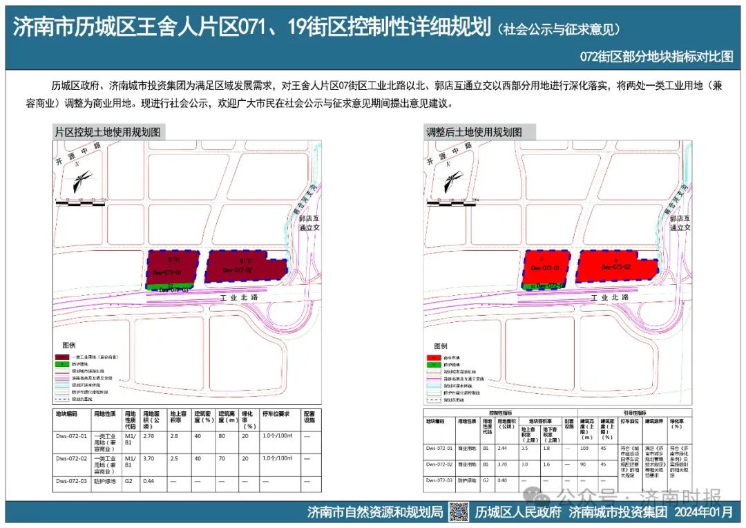 王舍人片区07街区拆分为071、072两个街区。本次调整范围包括王舍人片区071、19街区以及072街区部分地块。