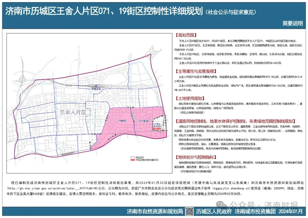 王舍人片区071街区,北至响泉路,南至胶济铁路,西至凤鸣北路,东至绕城高速东环线、规划支路,街区总规划范围约339.41公顷。
