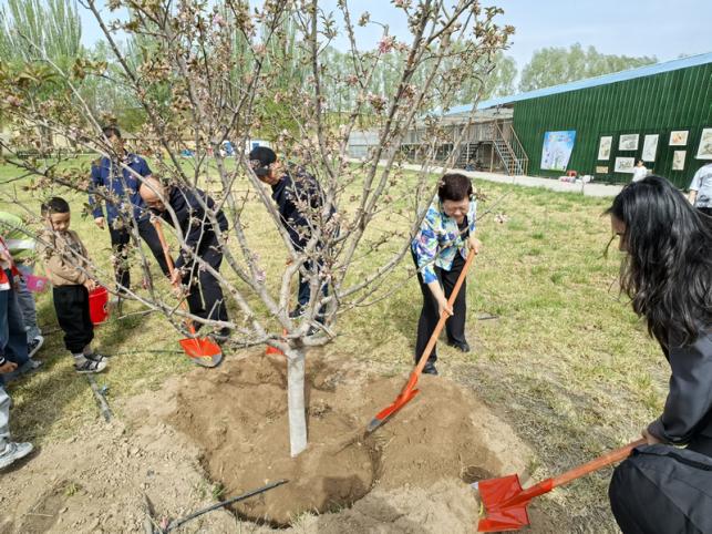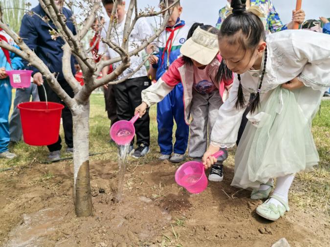 与会领导与孩子们亲手栽种并浇灌了小树苗