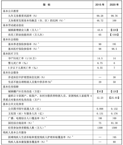 专栏1:“十三五”时期基本公共服务领域主要发展指标