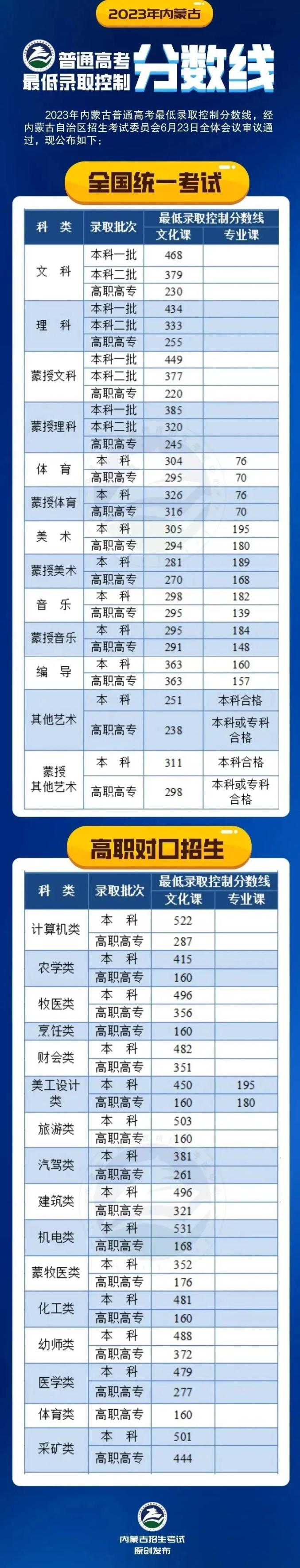 2023年内蒙古普通高考最低录取控制分数线,经内蒙古自治区招生考试委员会6月23日全体会议审议通过,现公布如下: