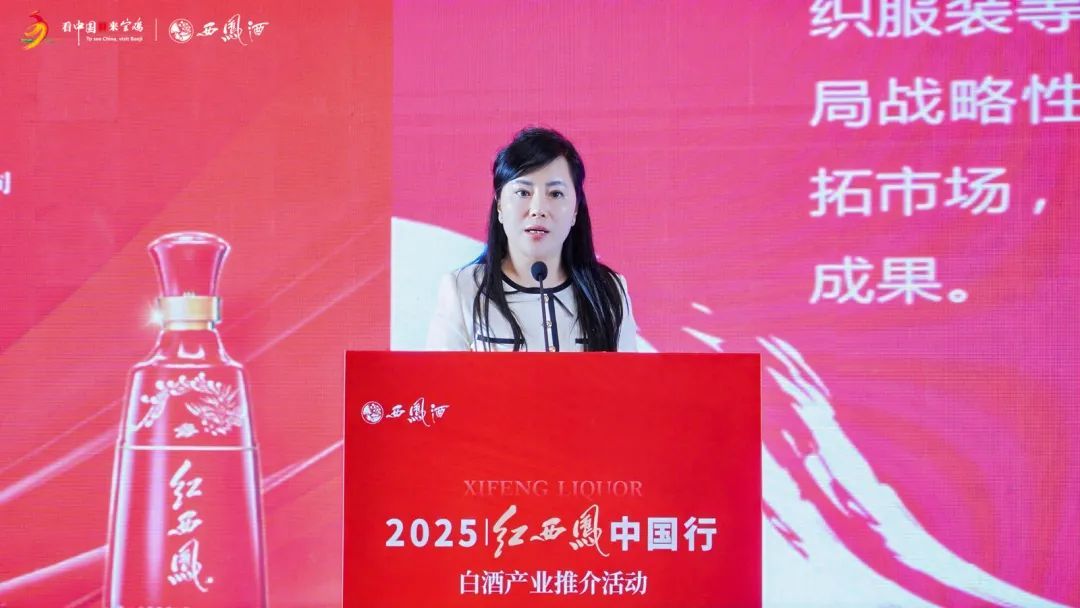 李洁在活动中对陕西臻品进行了精彩推介。她讲到,陕西消费品不仅在国内市场表现亮眼,还通过区域合作加速“出省出海”。以西凤酒为代表的陕西臻品,正以卓越的品质和深厚的文化底蕴,逐渐赢得更广泛消费者的青睐与认可。欢迎更多的企业家朋友来陕投资兴业,共同推动陕西消费品的繁荣与发展。