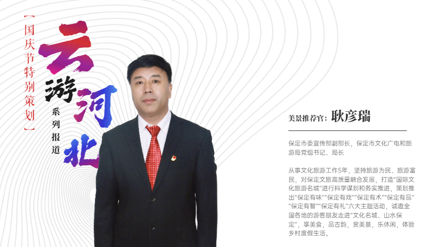 今天,请跟随我们这一期的美景推荐官——保定市文化广电和旅游局党组书记、局长耿彦瑞的脚步,一起“云”游保定,感受古城的深厚底蕴吧!