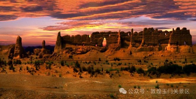 2.小方盘城(玉门关遗址):核心景点,可沿着“漢”“诗词”旗帜指引行走,穿过玉门关,走上观景台能看见远方的疏勒河,可在此感受历史沧桑,拍照留念。