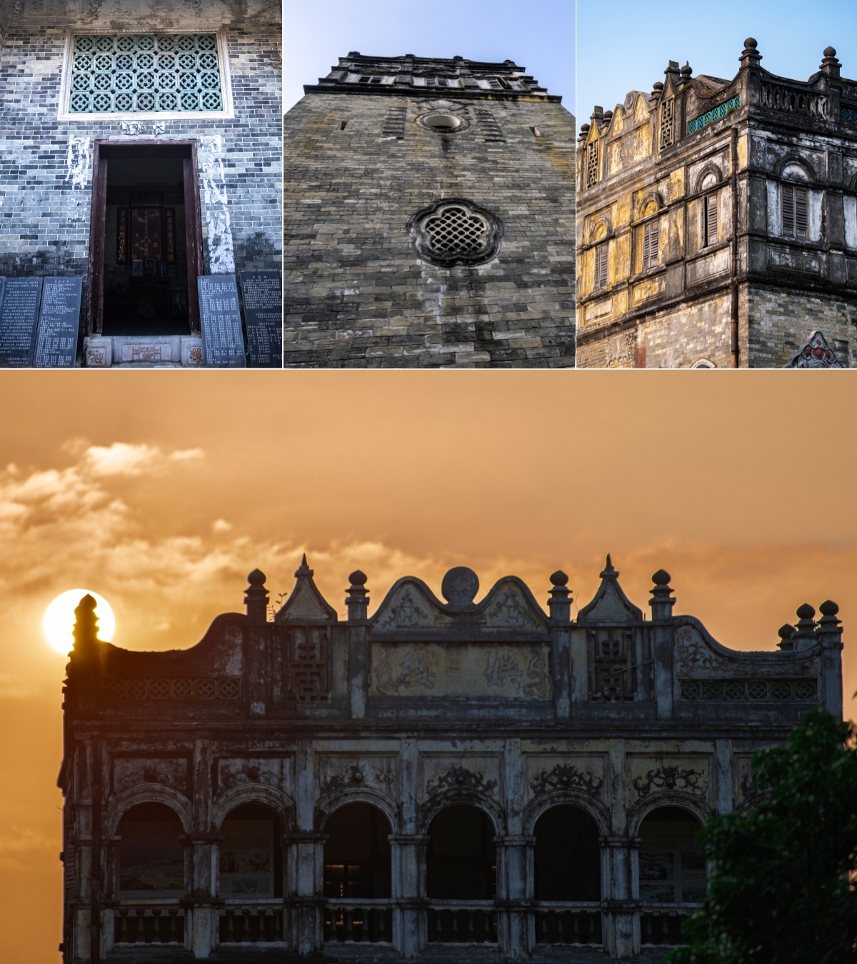 榜山村的古建筑群巧妙融合了中西建筑风格,既有西洋风格的山字形拱顶间墙、古罗马柱式开窗,又有中式风格的歇山顶重檐、马头墙,展现出独特的艺术魅力。