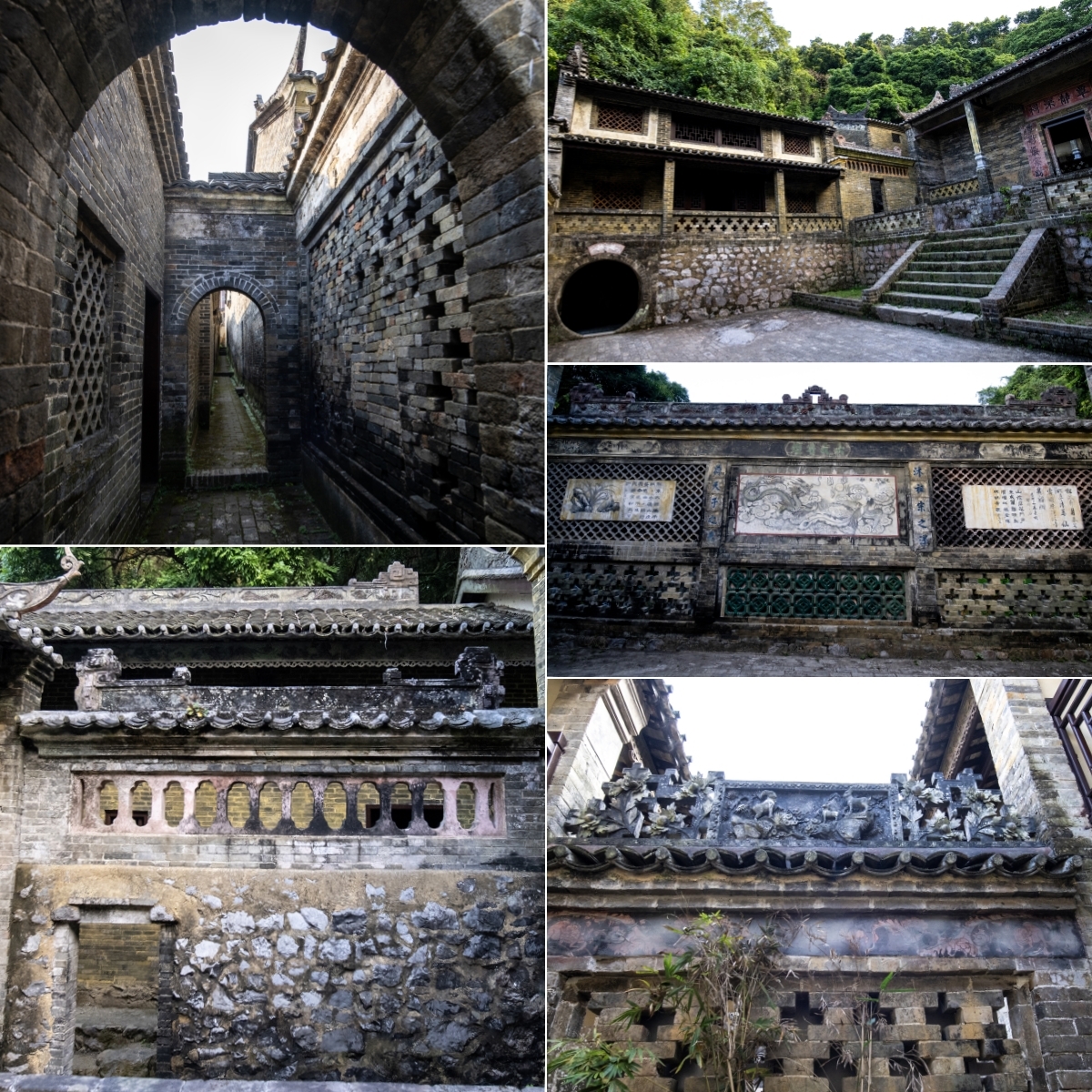 房顶和山墙上砌筑翘峨犄角,造型独特,增添了几分古朴典雅和庄重感。