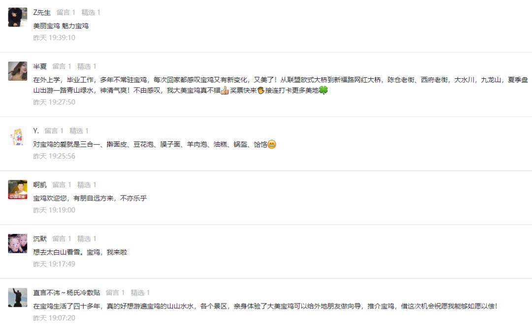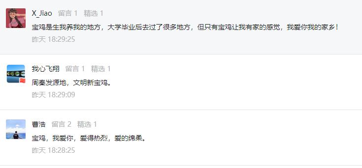 参与活动人员需要关注“宝鸡新闻网”微信公众号后,在本条推文后回复留言,表达对宝鸡的喜爱(内容不限),点赞量排名前十的用户将收到小宝的领奖回复。