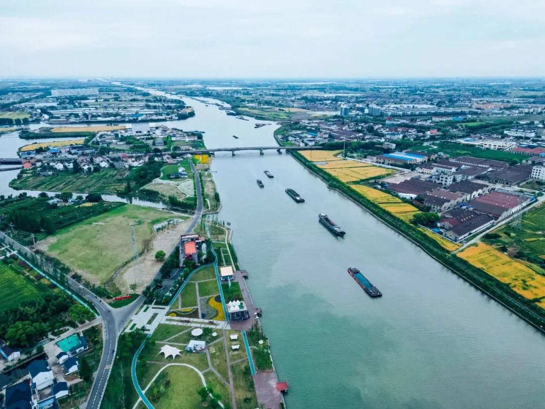 位于大运河与太浦河交汇之处的运浦湾,运河亲水步道、苏嘉铁路文化、太浦河历史印记和工业遗存等串起了运浦生态廊道。河面上船只众多、汽笛声阵阵,沿岸绿草如茵、咖啡香四溢。来此,可开启一场文化、生活自然融合的惬意之旅。