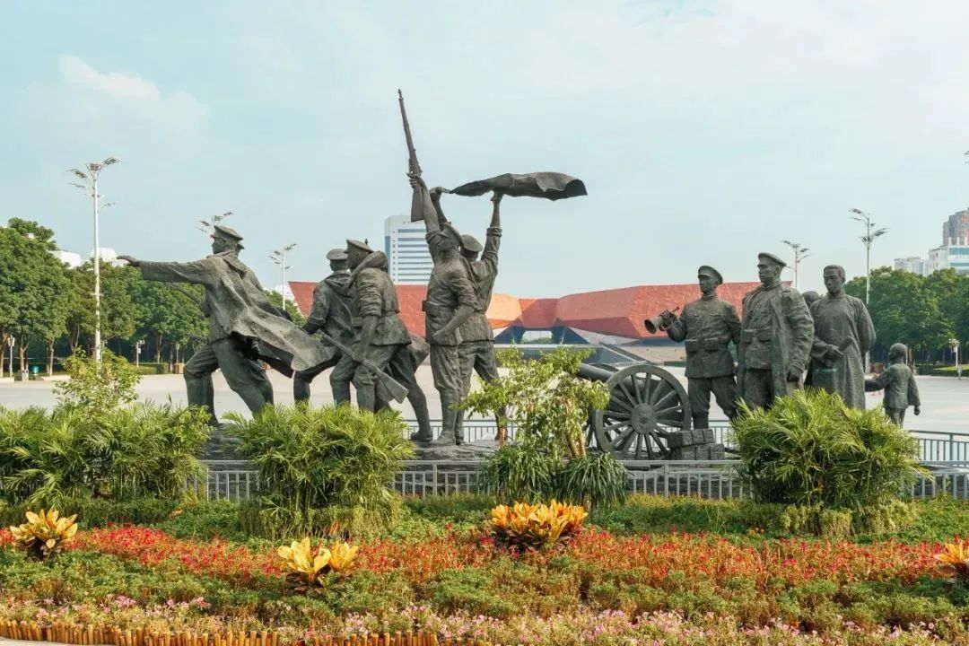 参观完辛亥革命博物院,还能在首义广场上瞻仰彭刘杨三烈士塑像、孙中山铜像、黄兴拜将台遗址。