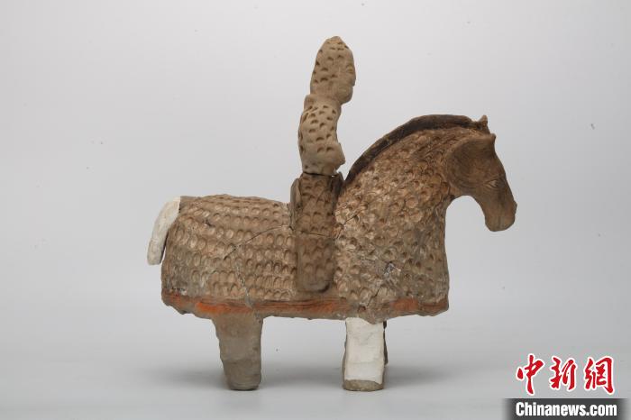十六国墓葬位于墓地东北部,共38座,呈四列分布,墓葬形制均为长斜坡墓道洞室墓,墓道均有二或三级台阶。出土陶人物俑、陶骑马俑、陶牛车、陶九盘连枝灯、陶灶等器物。柴怡说,“其中,M452墓室内发现土雕仿木建筑造型,为十六国墓葬中所罕见。”