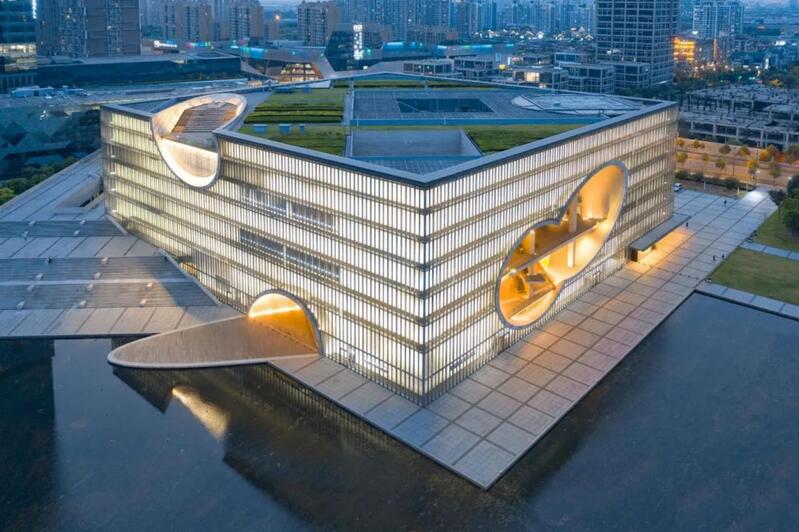 坐落于上海嘉定新城中心区,面向生态美境远香湖,由享誉世界的建筑大师安藤忠雄设计,以建筑形态与自然环境无间融合为设计理念,水、风、光等自然元素在简单的几何空间中交融并织,幻变出丰富的光影层次,引人遐思。