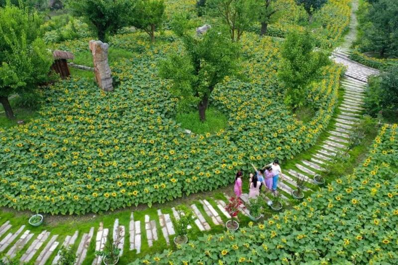 菊园百果园占地面积1380亩,园区内河道密布,8座景观桥梁贯穿河道,一桥一景,巧妙呼应。园区“四季有花、四季有果、四季有景、四季有玩”,被评为全国休闲农业与乡村旅游五星级园区。