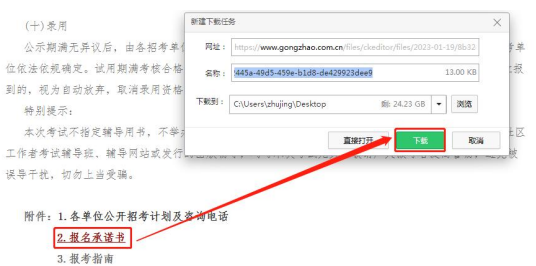 2.报名承诺书下载。打开海淀区招考公告页面,滑到页面底端,下载附件 2(报名承诺书);